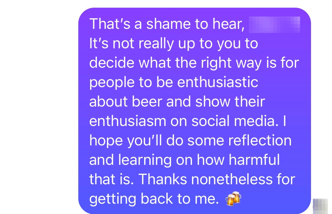 One of my roles in a former job was to send beer out to influencers. To facilitate this, I joined a Facebook group for beer enthusiasts, which was run by one of the regional influencers to whom I sent beer. I had chosen this person in part because he ran this Facebook group. I found this group to be refreshingly upbeat, made up of people who not only genuinely enjoyed beer but also seemed to celebrate others’ enjoyment of beer.
